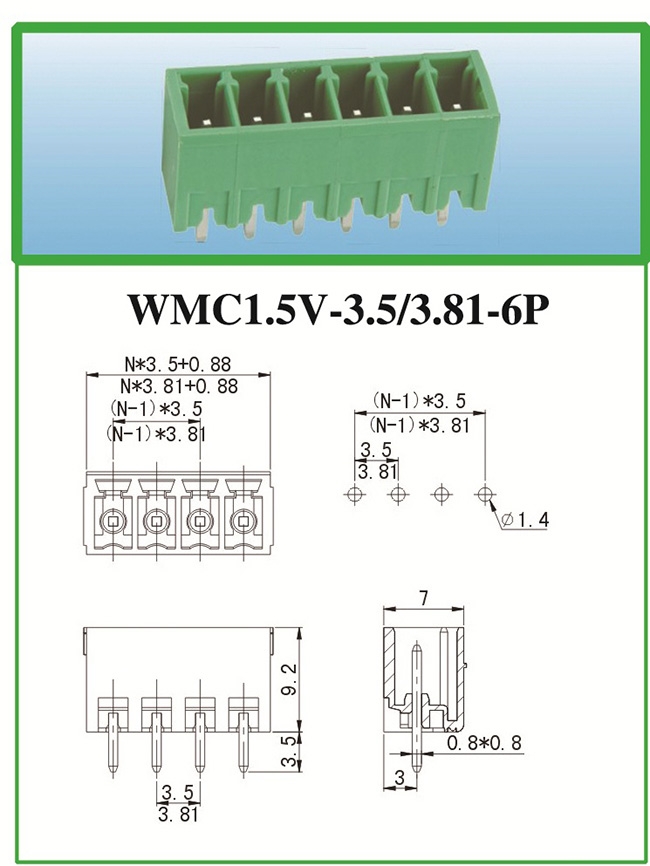 WMC1.5V-3.5/3.81-6P PCB線(xiàn)路板接線(xiàn)端子